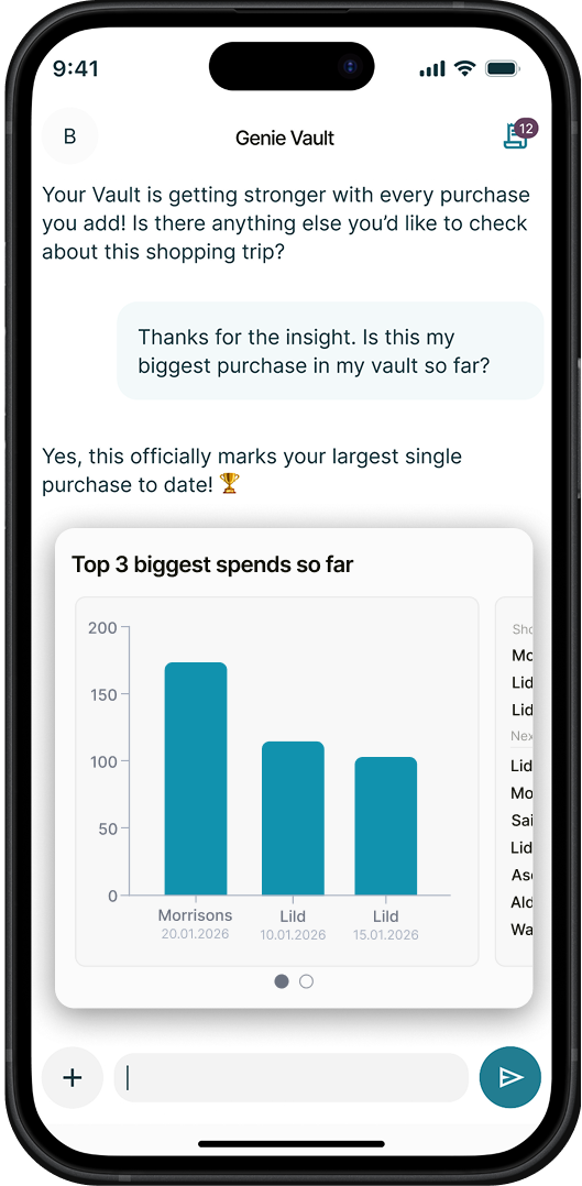 Genie Vault is a secure user built, controlled and governed personal data asset which captures and stores a user’s verified purchase records — across retailers, categories, online and in-store. Transforming shopping journeys into a long-term source of value.